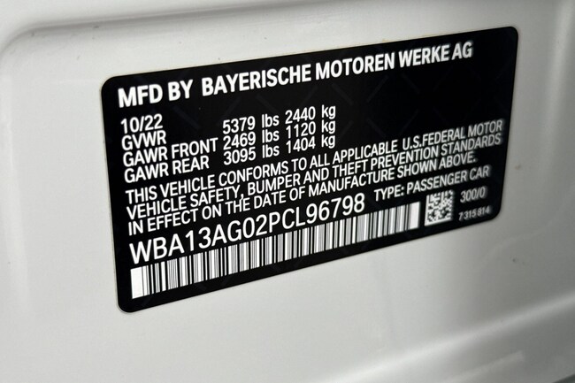 - VIN : WBA13AG02PCL96798