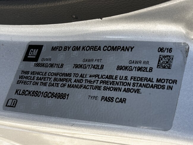 - VIN : KL8CK6S01GC649881