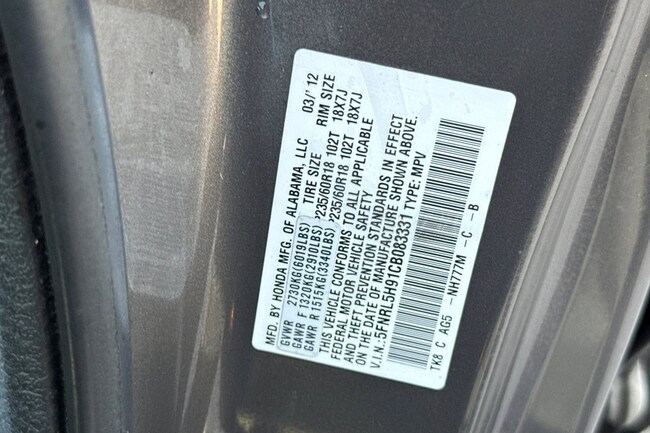 - VIN : 5FNRL5H91CB083331